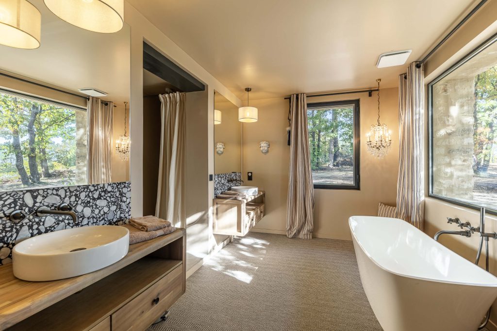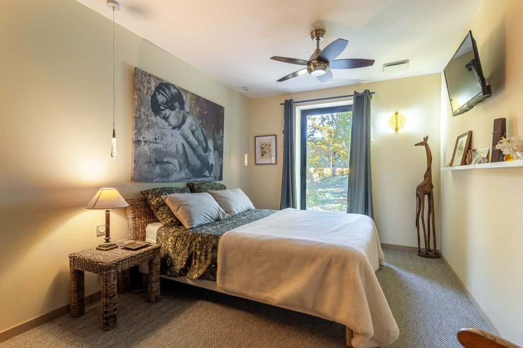 Chaque chambre a été conçue comme un cocon, avec des matériaux nobles, un confort haut de gamme et une ambiance chaleureuse. Trois suites parentales et une chambre spécialement pensée pour les enfants.